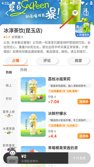 3、在商家店鋪詳情頁(yè)面,找到右上角的愛心形狀收藏按鈕,點(diǎn)擊該按鈕發(fā)起收藏操作。