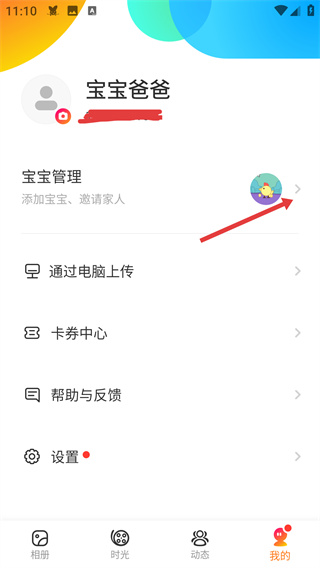 1、在“我的”頁(yè)面點(diǎn)擊【寶寶管理】選項(xiàng),進(jìn)入對(duì)應(yīng)的寶寶管理頁(yè)面。