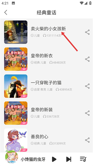 3、在經(jīng)典童話列表中選擇目標故事,點擊進入該故事的播放界面。