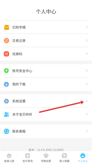 2、在個(gè)人中心頁面找到【系統(tǒng)設(shè)置】入口并點(diǎn)擊,進(jìn)入可調(diào)整應(yīng)用參數(shù)的設(shè)置界面。
