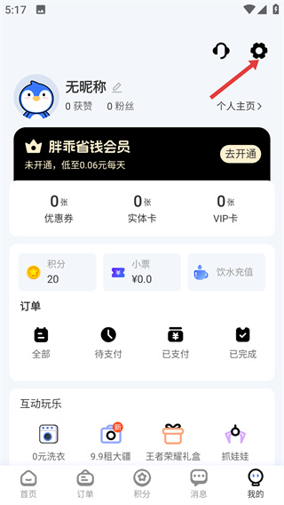 2、在個人中心頁面點擊右上角的【設置】圖標,進入設置界面,可調整賬號及功能參數(shù)。