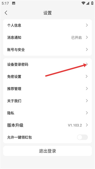 3、在設置界面中找到【設備登錄密碼】選項并點擊,進入密碼設置頁面。