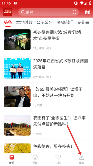 1、在新聞類APP的首頁點擊底部“我的”選項,進入包含互動中心、功能設置的個人頁面。