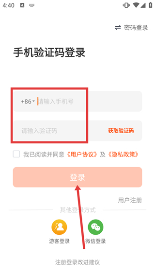 4、在手機驗證碼登錄頁面,填寫目標(biāo)手機號、獲取并輸入對應(yīng)驗證碼,勾選“我已閱讀并同意協(xié)議”后點擊“登錄”按鈕,完成登錄以繼續(xù)職位投遞操作。