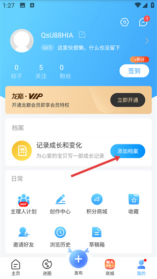 2、在個(gè)人中心頁面的“檔案”板塊點(diǎn)擊【添加檔案】按鈕,進(jìn)入添加檔案資料的填寫頁面。