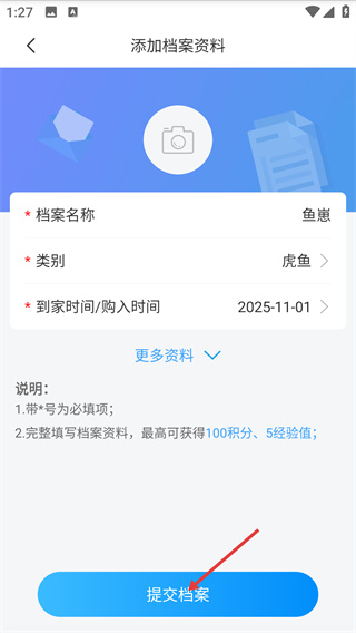4、確認(rèn)檔案資料填寫完整后,點(diǎn)擊【提交檔案】按鈕,完成檔案的創(chuàng)建操作。