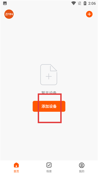 1、在ZINN應(yīng)用首頁,看到“暫無設(shè)備”提示后,點擊【添加設(shè)備】按鈕,進入設(shè)備選擇界面。
