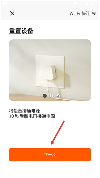 4、按重置設(shè)備提示完成通電操作后,點擊【下一步】按鈕,繼續(xù)完成燃氣灶的添加配置。