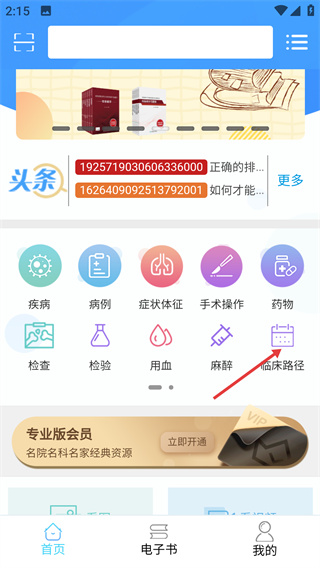 1、在首頁(yè)點(diǎn)擊【臨床路徑】選項(xiàng),進(jìn)入對(duì)應(yīng)功能頁(yè)面,該模塊提供醫(yī)療臨床診療流程的專(zhuān)業(yè)參考內(nèi)容。