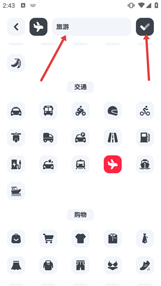 4、在新分類設(shè)置頁,填寫分類名稱、選擇對應(yīng)圖標(biāo)后,點擊確認(rèn)按鈕,完成新支出分類的添加操作。