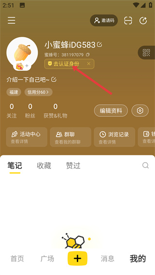 2、在個(gè)人中心頁面點(diǎn)擊【去認(rèn)證身份】按鈕,進(jìn)入身份認(rèn)證頁面,該頁面用于提升賬號(hào)的個(gè)人可信度。