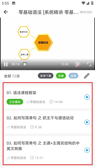 4、支持視頻音頻資源免費下載,可離線隨時隨地學(xué)習(xí),搭配便捷檢索功能,讓語法學(xué)習(xí)更高效靈活。