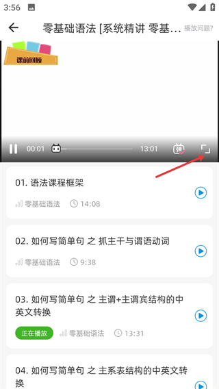 2、在英語語法課程列表中選擇對應(yīng)的課程,進(jìn)入該課程的專屬學(xué)習(xí)頁面。