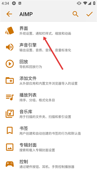 3、在設(shè)置頁(yè)面里,選擇“界面”選項(xiàng),進(jìn)入界面配置頁(yè)面,可調(diào)整外觀、顯示等相關(guān)設(shè)置。