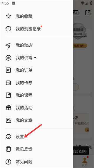 2、在功能側(cè)邊欄中點擊【設(shè)置】選項,進入設(shè)置頁面,可配置賬號安全、消息推送等多類功能選項。