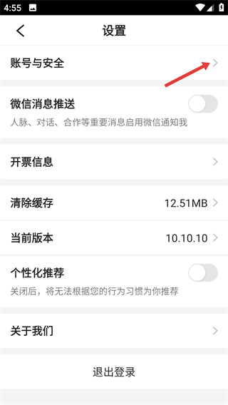3、在設(shè)置頁面點擊【賬號與安全】選項,進入對應(yīng)管理頁面,該頁面用于處理賬號綁定、密碼修改等安全相關(guān)操作。