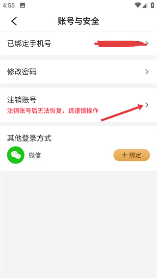 4、在賬號與安全頁面點擊【注銷賬號】選項,進入賬號注銷流程。