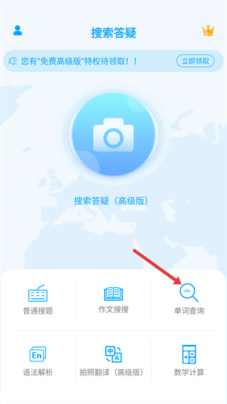 1、在搜索答疑主界面,點擊【單詞查詢】選項,進入單詞查詢功能頁面。