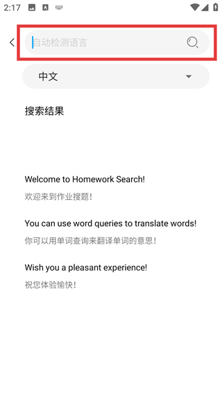 2、進入單詞查詢頁面后,確認目標翻譯語言,點擊頂部的搜索輸入框,準備輸入待查詢的單詞。
