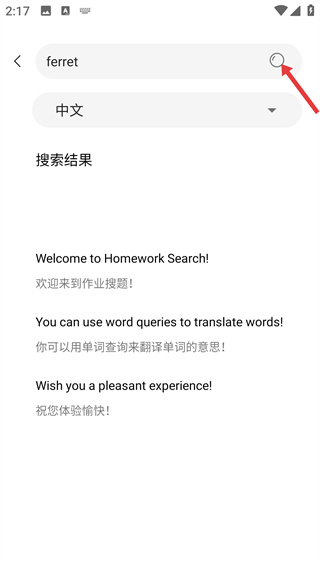 3、在搜索輸入框中輸入需查詢的單詞,點擊輸入框右側的搜索按鈕,觸發(fā)單詞的翻譯查詢操作。