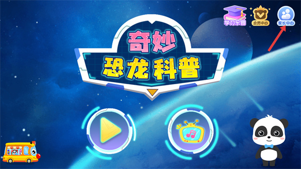 1、進(jìn)入【奇妙恐龍科普】界面,點(diǎn)擊右上角的【家長(zhǎng)中心】功能。