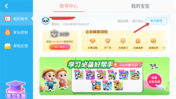 3、進(jìn)入【賬號(hào)中心】后,點(diǎn)擊界面中的【賬號(hào)管理】按鈕進(jìn)入對(duì)應(yīng)頁(yè)面。