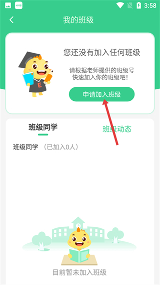 3、在【我的班級】頁面,點擊【申請加入班級】按鈕,觸發(fā)班級號輸入的彈窗。