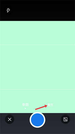 3、進入拍照界面后,可切換【單題】、【整頁】拍攝模式,依據(jù)題目數(shù)量選擇對應(yīng)模式,準備拍攝題目進行搜題。