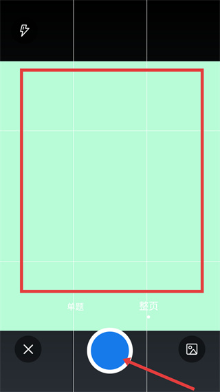 4、選定【整頁】模式后,通過紅色框選區(qū)域?qū)暑}目頁面,確認范圍后點擊拍攝按鈕完成題目采集操作。