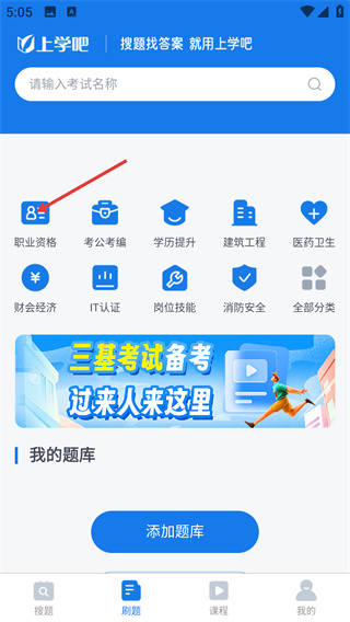 1、進(jìn)入【上學(xué)吧】刷題頁,選擇【職業(yè)資格】的考試類型。