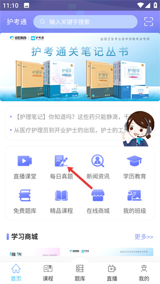 1、進(jìn)入【護(hù)考通】首頁,可定位到【每日真題】功能入口,這是開啟護(hù)考題目練習(xí)的關(guān)鍵操作步驟。