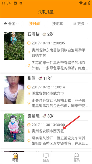 2、進(jìn)入【失聯(lián)兒童】列表頁,選擇對(duì)應(yīng)的條目,點(diǎn)擊該條目進(jìn)入該失聯(lián)兒童的詳情頁面。