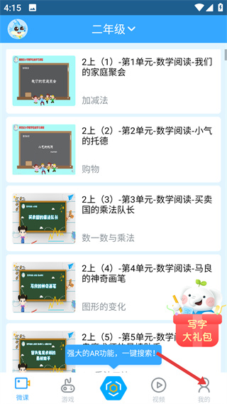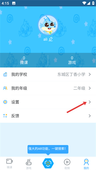 1、在APP的微課頁面,點擊底部“我的”按鈕,進入個人頁面,可查看學(xué)校、年級等個人信息內(nèi)容。