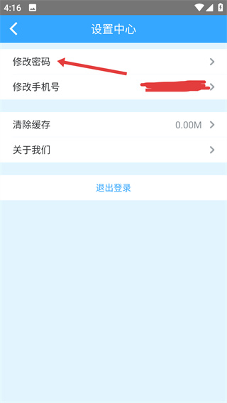 3、在設(shè)置中心頁面,選擇“修改密碼”選項,進入密碼修改的操作頁面,準(zhǔn)備進行賬號密碼的更新。