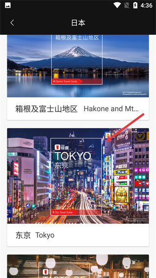 2、進入日本的地區(qū)列表后,選擇“東京”對應的指南條目,進入東京的旅行指南詳情頁面。