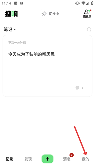 2、進(jìn)入【獨響】的主界面,底部有【記錄】-【發(fā)現(xiàn)】-【+】-【消息】-【我的】導(dǎo)航欄,點擊【我的】可查看個人相關(guān)內(nèi)容。