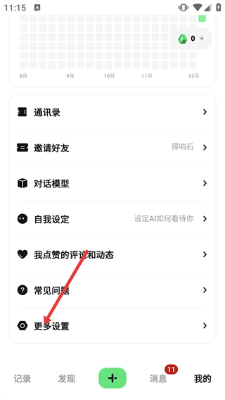 3、在【獨響】的【我的】頁面,可見【通訊錄】-【邀請好友】-【對話模型】等選項,點擊【更多設(shè)置】進(jìn)入設(shè)置界面。