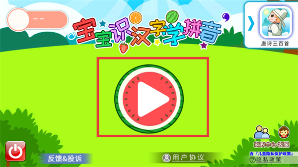 1、進(jìn)入【寶寶識漢字學(xué)拼音】頁,點擊播放按鈕啟動學(xué)習(xí)。