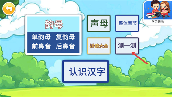 2、進(jìn)入學(xué)習(xí)選擇頁,點擊【測一測】進(jìn)入測試環(huán)節(jié)。
