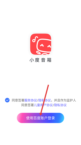 1、在【小度音箱】登錄頁,勾選【同意簽署服務協(xié)議/隱私協(xié)議】相關選項后,點擊【使用百度賬戶登錄】進入后續(xù)流程。