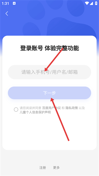 2、進入【登錄賬號-體驗完整功能】頁,在【請輸入手機號/用戶名/郵箱】框填寫信息,后續(xù)可點【下一步】推進。