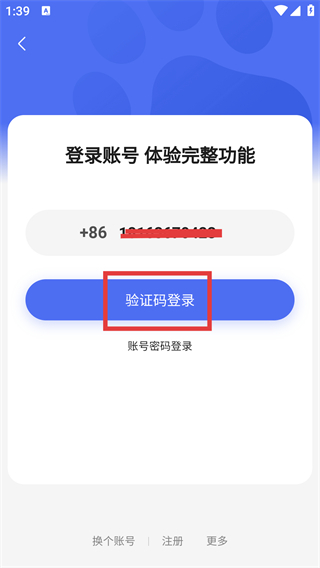 3、在登錄頁填寫手機號后,選擇【驗證碼登錄】方式,替代賬號密碼登錄,進入驗證碼獲取環(huán)節(jié)。