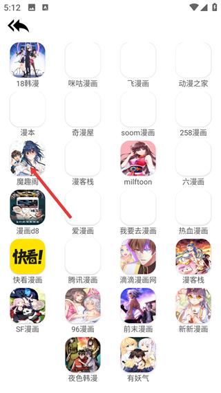 2、進(jìn)入漫畫世界頁面后,選擇目標(biāo)漫畫平臺(tái),進(jìn)入對(duì)應(yīng)的漫畫資源界面。