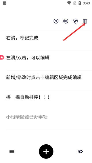 4、若需刪除已創(chuàng)建的待辦事項(xiàng),點(diǎn)擊界面上方的【垃圾桶】圖標(biāo),完成對應(yīng)待辦事項(xiàng)的刪除操作。