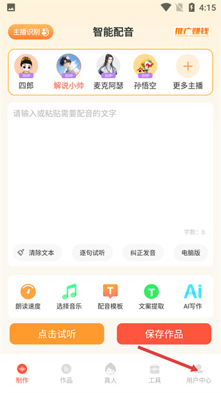 1、內(nèi)置近300位智能合成配音主播,涵蓋多種多元特色說話風(fēng)格,可自由挑選適配不同創(chuàng)作場景。