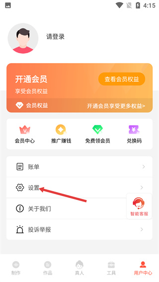 2、進(jìn)入【用戶中心】頁面后,找到并點(diǎn)擊【設(shè)置】選項(xiàng),進(jìn)入【設(shè)置】界面。