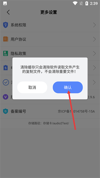 3、在更多設(shè)置頁面,點(diǎn)擊【清理緩存】選項,彈出緩存清理的確認(rèn)提示框。