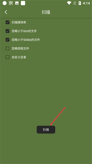 3、在掃描設(shè)置界面,勾選【掃描媒體庫(kù)】等篩選條件后,點(diǎn)擊底部【掃描】按鈕開(kāi)始檢索媒體文件。