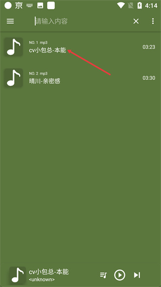 4、掃描完成后,界面顯示【NO.1-mp3-cv小包總-本能】等音樂(lè)列表,可選擇列表中的音樂(lè)進(jìn)行播放。
