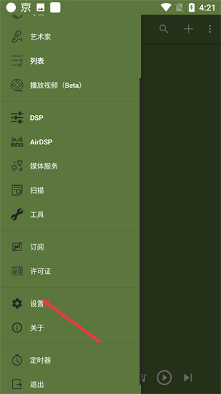 2、展開功能菜單后,選擇【設(shè)置】選項進入設(shè)置界面。